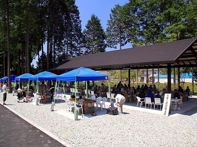 施設内の建物は地元の杉材を利用し、地元大工の技術によりユニークな構造となっている。バーベキューハウスは6人掛けの炉付きテーブルを設置。キャンプサイトで楽しむ場合にはレンタルの炉もある。事前予約で食材も手配可能だ。また不定期で地元新鮮野菜の即売もあるので、好みの食材を追加するのもいい。デイキャンプでバーベキューを楽しむもよし、コテージでゆっくり自然を満喫するもよし、思い思いのスタイルで楽しもう。