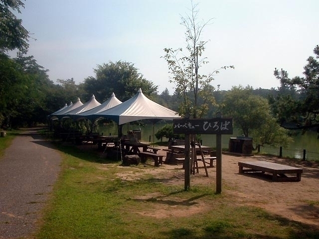 夏の大きな水泳プールが有名な健民海浜公園。ボートが楽しめる大池や、エノキ、クロマツ、ニセアカシアの森など自然にふれられるエリアが充実している。大池の畔にあるバーベキューひろばには6基の常設炉があり、それぞれにテント付きのテーブルを備えている。網、鉄板、ヘラ、火バサミ、炭など道具や燃料も揃っているので手軽だ。一日たっぷりアウトドアを楽しもう。