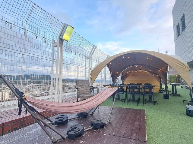 京都駅前のBBQ&ビアガーデン会場がリニューアルオープン!青空の下で、韓国コース・アメリカコース・日本コースの3種類のBBQコースと飲み放題を楽しめる。食材持ち込みコースやキッズコースもあり、ハンモックなど大人も子どももゆったり楽しめる遊びグッズも充実!コースはお肉に加え焼き野菜やコーンバター・枝豆・トルティーヤチップスなどサイドメニューも充実したボリュームたっぷりの内容。