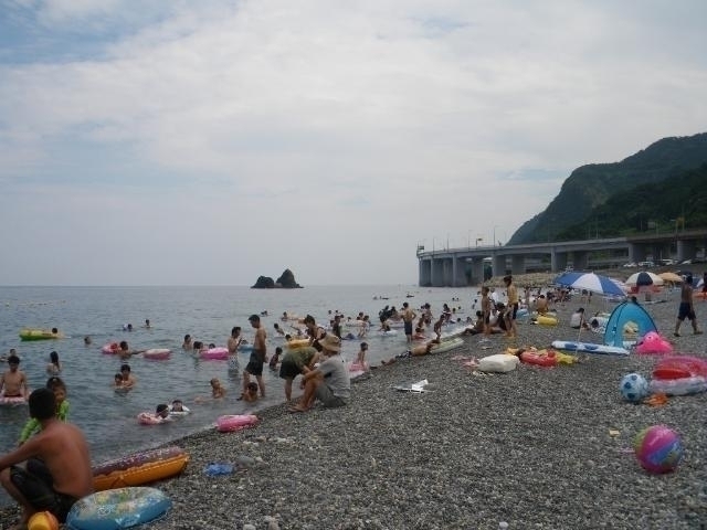 約900m続く浜を持つ、新潟東港に近い海水浴場。近くには日本海を望む「海辺の森キャンプ場」もある。大自然の中でのキャンプや海水浴で休日を楽しもうと、ファミリーを中心にたくさんの人々が訪れる。(天候等により、開設中止・期間変更になる場合あり)