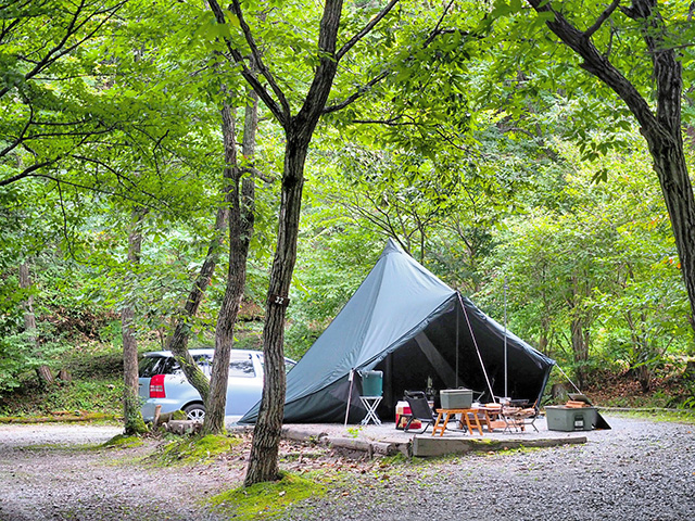霊山のふもと、森の中にあるキャンプ場。施設内の飲料水はすべて湧き水だ。利用の際は必ず予約が必要。平日に利用の場合は料金の支払い場所が現地ではなく、伊達市霊山総合支所となる。