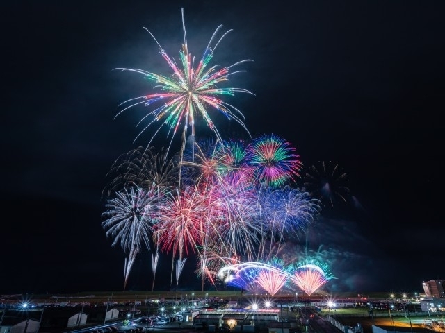更北地区の活性化と、450年以上前に川中島合戦で犠牲となった幾千の御霊の追悼を込めて開催されている「川中島古戦場まつり」の花火大会。会場は川中島古戦場史跡公園で、ミュージックスターマインや特大スターマインなど約3000発が信州の秋の夜空を華やかに彩る。また、日中は13:00からさまざまなステージイベントも予定されている。