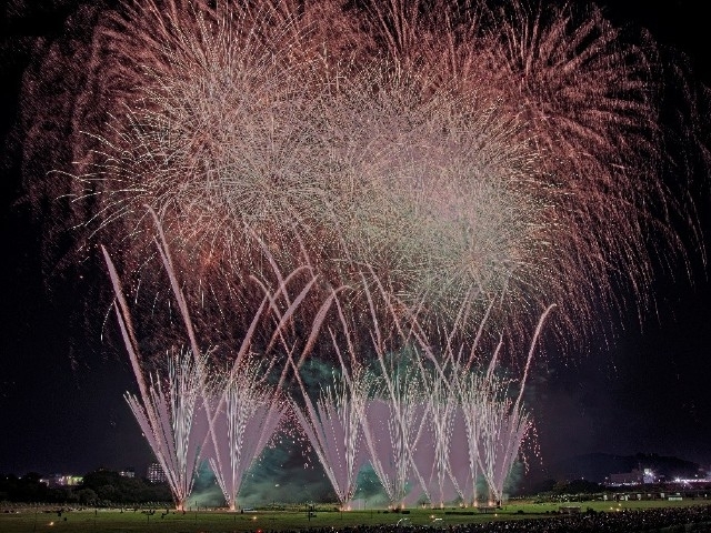 打上げ数約1万5000発を誇る北関東最大級の花火大会として、例年数十万人の人が訪れる大花火大会。8月の土・日曜に開催される「高崎まつり」の夜を色鮮やかに演出してきた。打上げられる花火の種類が豊富で豪華なのはもちろんだが、夜空が花火で覆いつくされる大迫力の演出は見逃せない。
