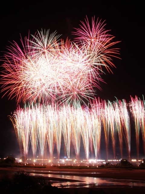 越谷の夏の夜空を彩る花火。オープニングからスターマインを中心に次々と花火が打上げられる。スピーディーで切れ目のない打上げが特徴で、見ごたえ十分。迫力満点で、息つく暇がないほどだ。打上げが川の中州で行われるため、川の両岸どちらからでも観ることができる。越谷駅からも近く、会場までのアクセスの良さもうれしい。