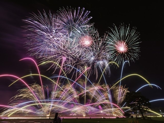風光明媚な景色のなかで、鮮やかな花火を楽しもう