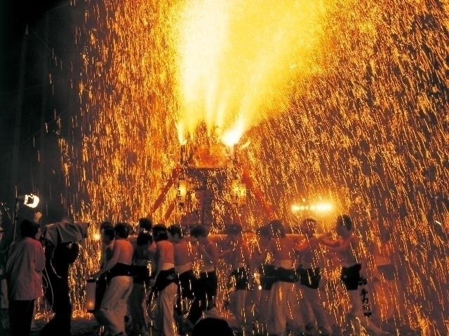木曽川の流れをせきとめて造られた大井ダム周辺の景勝地、恵那峡で開催する花火大会。ダム湖上に浮かべた3基の台船から打上げられる大スターマインなど約2000発の花火が湖面に映え、迫力満点の大音響が渓谷に響き渡る。湖上で花開く水中花火も見どころのひとつ。打上げ前には放生会・灯篭流しも行われ、幻想的な夜が楽しめる。