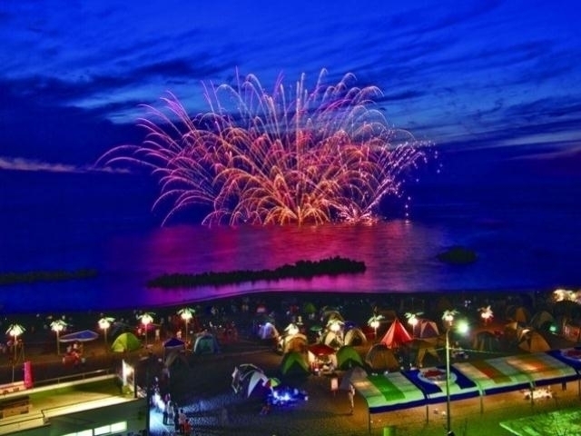 「大沼湖水まつり」は、1906(明治39)年、地元の住職が灯ろうを湖面に流し、湖の水難者を供養したのがはじまり。一時中断したが1913(大正2)年に復活、今回116回を迎える伝統あるまつりだ。スターマインをはじめ、広々とした夜空に打上げられる花火は、大沼の湖面にもパッと大輪の花を咲かせ、あたりを幻想的な雰囲気に変える。2日間にわたるまつりは灯ろう流しのほか、家族で楽しめるイベント等を開催予定。