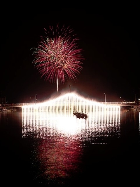 連日連夜、1ヶ月にわたって湖面に映える恒例の花火