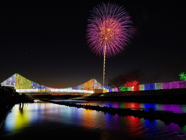 六郷橋で川開きとして始まったのがきっかけの、二子橋付近の多摩川河川敷で行われる花火大会。二子橋下流河川敷一帯には例年多くの観客が集まり、スターマインや、音楽と花火のコラボレーション“ハナビリュージョン”などが秋の夜空を彩る。この花火大会は、多摩川をはさみ、「世田谷区たまがわ花火大会」との合同開催で、川崎会場では2大会の花火を観ることができる。なお、毎年大変混雑するため、事前に有料の協賛席をおさえてゆったりと観賞するのがおすすめだ。