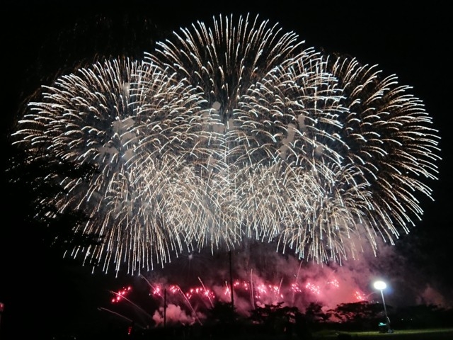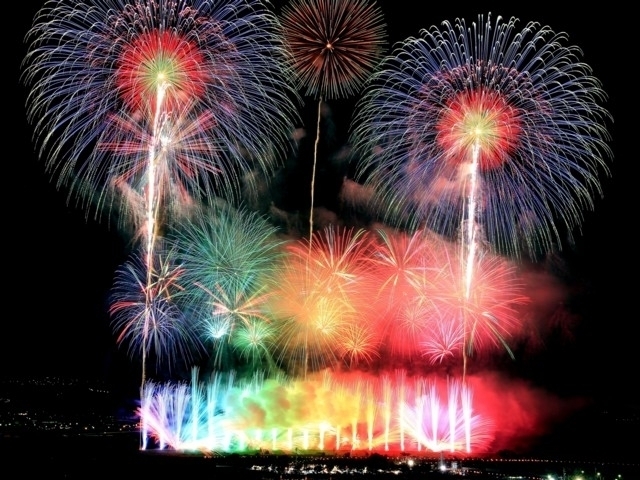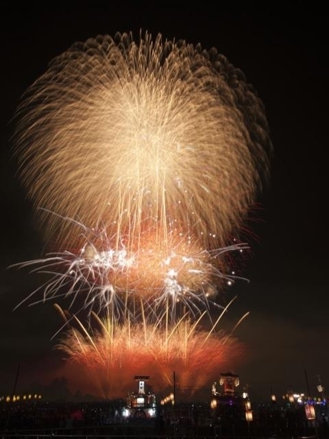 1879(明治12)年、地元の神社の秋祭りで花火大会を打上げたのが長岡の花火大会の始まりと言われており、戦争による中止を乗り越え1947(昭和22)年に花火大会は復活を果たした。2004(平成16)年に新潟県中越大震災に見舞われるが翌年から復興祈願花火フェニックスの打上げを開始している。長岡空襲で亡くなった方々への慰霊と復興に尽力した先人への感謝、恒久平和への願いなど、度重なる苦難を乗り越えてきた長岡市民の特別な想いが込められている花火大会。数えきれない尺玉で光輝燦然となる長岡の夜空を利目相待!