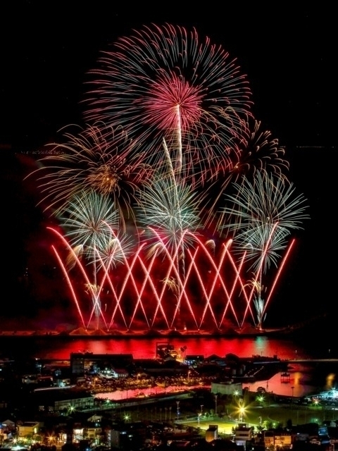 球磨川の河川敷で行われるこの大会は、西日本を代表する全国花火競技大会で、北は秋田県から南は鹿児島県までの30人の有名花火師がその腕を競う。5号玉、10号玉、スターマインの3部門の競技花火のほか、ミュージック花火なども予定。ラストは「花火師との光の交流」で締めくくる。ハイレベルな花火の競演は「八代の花火」として有名で、九州以外からも注目を集めている。