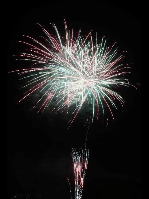 バラエティに富んだ花火が歴史ある温泉街の空を染める