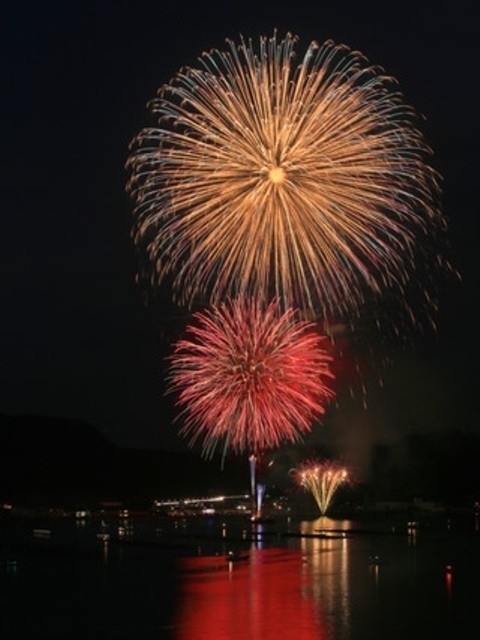 四方を濃い緑に包まれた、西米良村で開催される花火大会。大会名の「やまびこ」は、1発の爆音が山々に反響して、文字通りやまびことなり、2発3発と渓谷に響きわたるところから名づけられた。山に囲まれた場所での花火大会とあって、その炸裂音の大きさは格別。この迫力を求めて遠方から駆けつけるファンも多い。打上げは、清流・一ツ瀬川の河原。昼間はキラキラと光る川も、夜になると真っ暗闇。そこに打上げられる花火はくっきりと鮮やかで、生命力さえ感じさせる美しさだ。