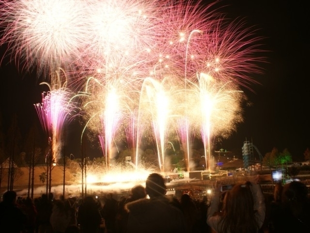 レジャーパークで遊びつくした後は花火の競演を堪能