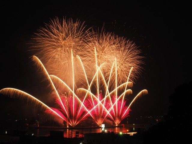 港町の夜空を彩る迫力満点の花火