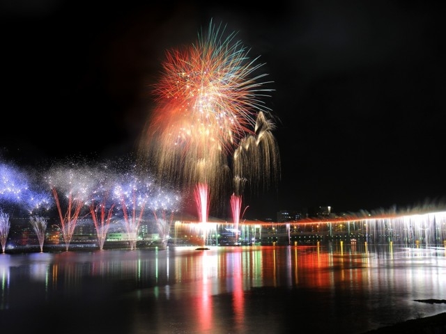 松浦川を彩る打ち上げ花火