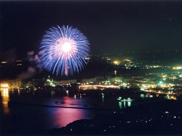 大分県に程近い福岡県の東部、周防灘に面した豊前市はいろいろな海産物に恵まれている。宇島漁港には水産加工施設「うみてらす豊前」もあり、新鮮な魚介類を堪能することもできる。「豊前市みなと祭り」では、昼間は多数の漁船が大漁を祈って行進する「豊漁祭」などが行われる。祭りの見どころは、もちろん花火大会。様々な花火が海上から打上げられ、宇島港の夜を華麗に彩る。