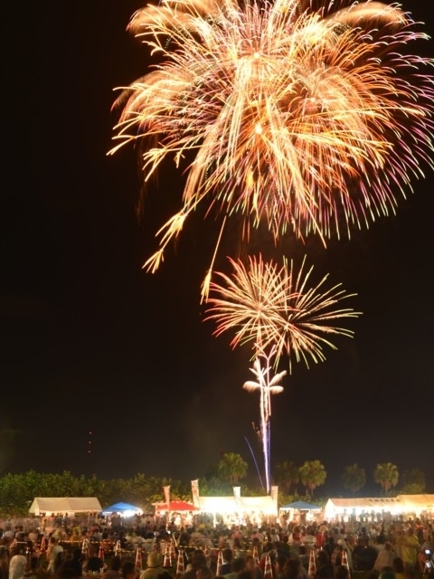 亜熱帯の夜空に花開く尺玉の連発が見どころ
