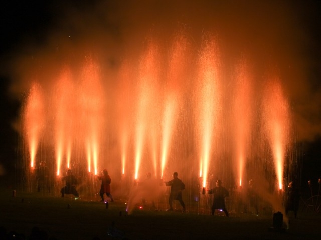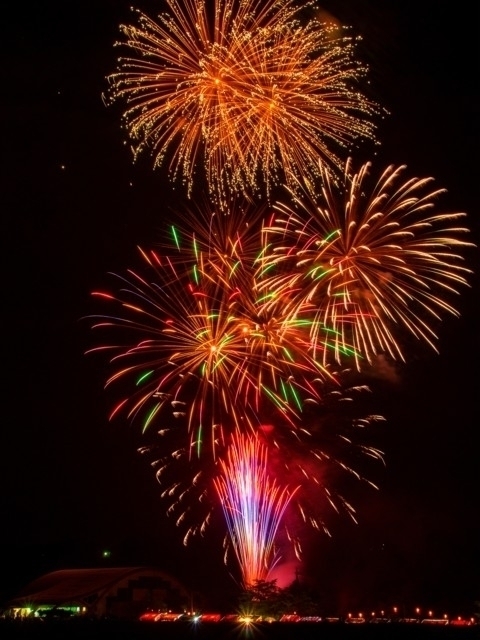 伝統のまつりの前夜祭を彩る花火