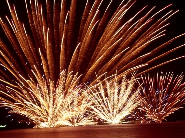 温泉街の夜空を彩る超特大スターマインは必見!