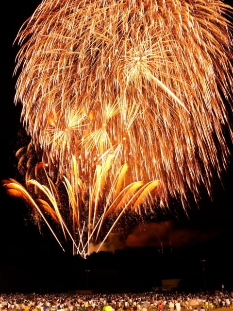 湯沢の山あいに響く大迫力の花火!!