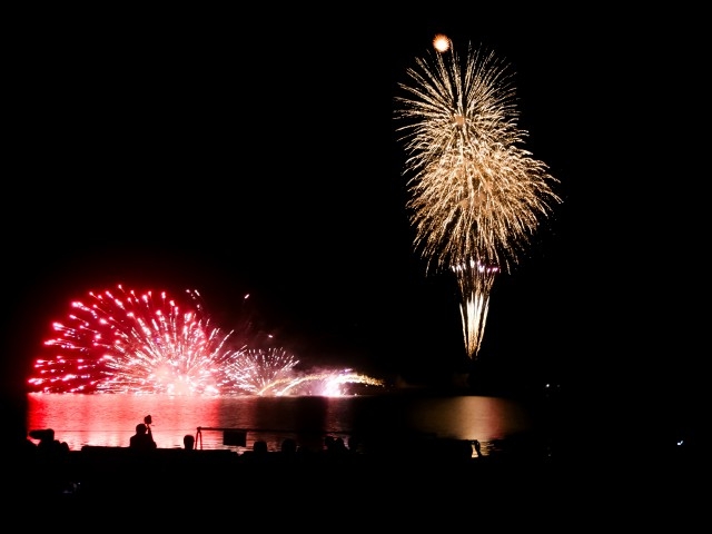海に浮かべた土俵の上で行われる「日本海海上大相撲」で有名な赤泊港まつりを締めくくる花火大会。本数は150玉程度と少ないが、身近で見られるので迫力充分。露店も出店し、お祭りムードを盛り上げる。