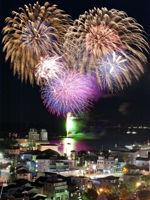 阿波藩から伝わる阿波花火大会発祥の地である小松島。「小松島港まつり納涼花火大会」は徳島県内でその年一番初めに行われる花火大会で、阿波の花火師を代表する市内花火業者の腕の見せどころとなっている。スターマイン花火や、最大320mにも広がる尺玉花火などが小松島港沖から打上げられる。約2500発もの多種多様な花火は見る人の心を魅了する。
