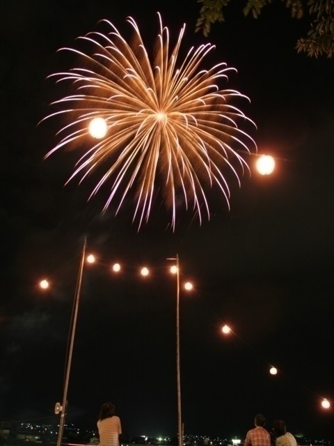 温泉情緒いっぱいの街で花火を楽しむ