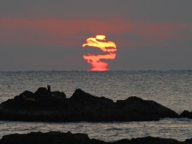 全国屈指のサーフポイントとして知られ、サーフィンのさまざまな大会も開催される生見海岸。東洋町から室戸市にかけての沿岸で見られる初日の出は、水平線を赤く染めながらゆっくりと昇る。その光景に思わず手を合わせたくなるほどだ。運がよければ「だるま朝日」も見られる。