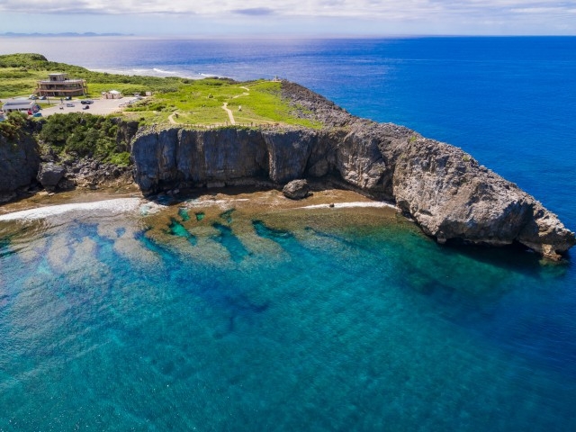 沖縄本島の最北端にある隆起サンゴ礁の断崖絶壁から雄大な景色が広がる岬で、遠くは与論島まで見渡せる。ごつごつとした岩場が続く岬の先端は、かつて本土復帰を願ってのろしを上げたという場所。紺碧の海が取り囲む岬は、沖縄の絶好の初日の出ビューポイントだ。青く澄んだ海の水平線の彼方から昇る初日は感動の一言。