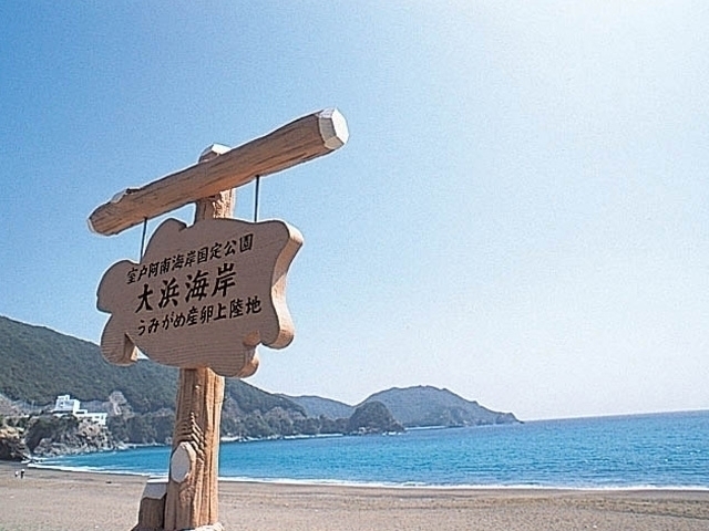 南国詩情あふれる景勝地で「日本の渚・百選」にも選ばれた海岸。アカウミガメの産卵地としても知られている。太平洋上に昇る初日の出が浜辺をオレンジ色に照らす美しい光景が広がる。