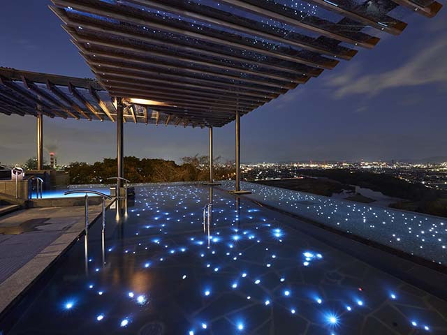 美しい夜景を眺めながら温泉が楽しめる