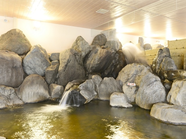 内風呂とは思えないスケールの大きい庭園風呂が人気の施設。低温と高温の2種類の源泉を入浴にちょうどいい温度にブレンドし、内風呂、露天風呂ともにそのままかけ流しする。