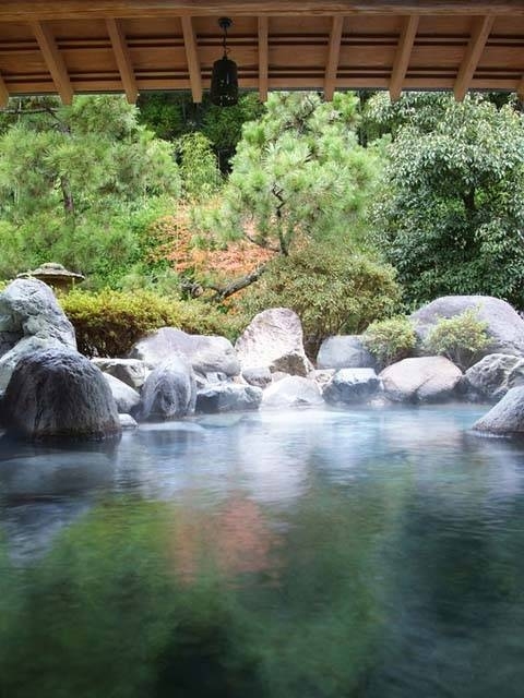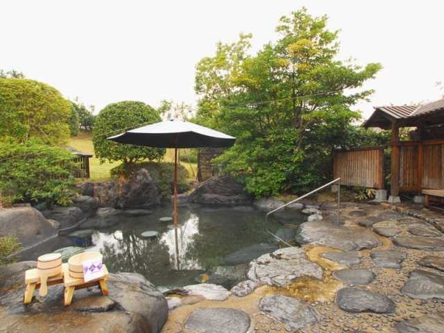 庭園露天風呂、岩風呂、展望浴場、大浴場、家族風呂があり、風呂めぐりが楽しめる。庭園露天風呂は庭の中に浴槽を配した開放的な空間。駐車場にバス停を兼ねた足湯もある。