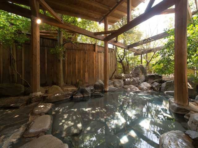山上貸切露天風呂や自然石で造られた岩風呂など多彩に楽しめる