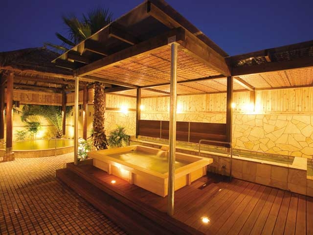 バリ島をイメージし椰子の木や白陶の置物が随所に飾られた南国ムードあふれる温泉。露天スペースには源泉風呂、樽風呂、歩行浴など、大浴場には大浴槽、薬湯など浴槽の種類が豊富。