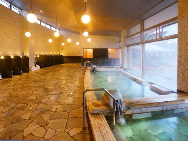 サウナ、気泡湯、12mの歩行浴、二つの貸切内風呂などバラエティーに富むアイテムバスをそろえる公共温泉施設。湯はやわらかい肌ざわりの単純温泉。大浴場は男女日替わり。