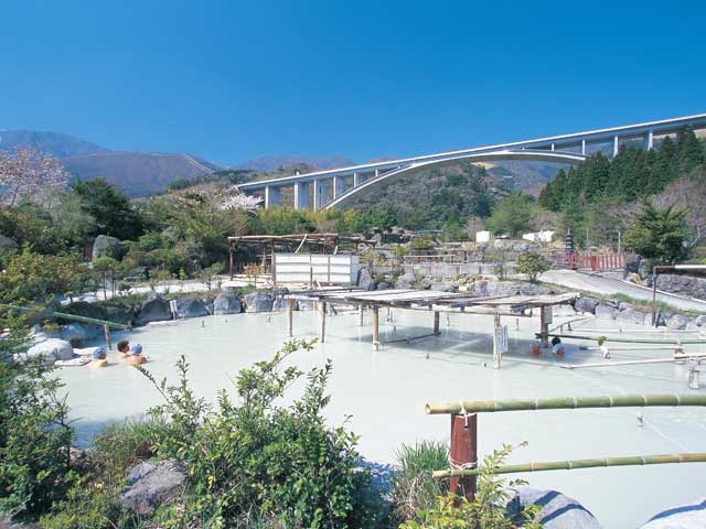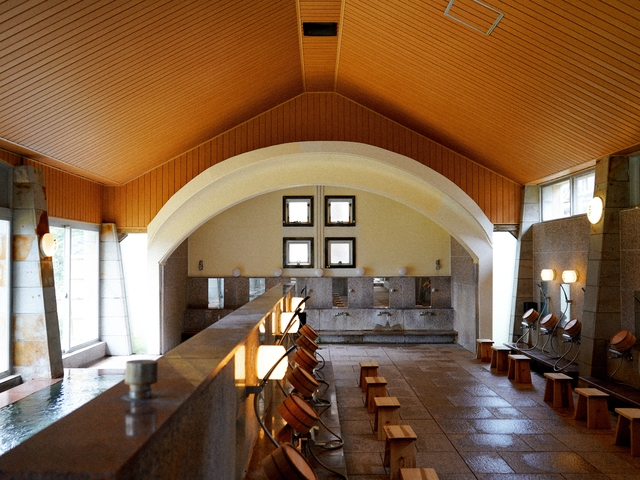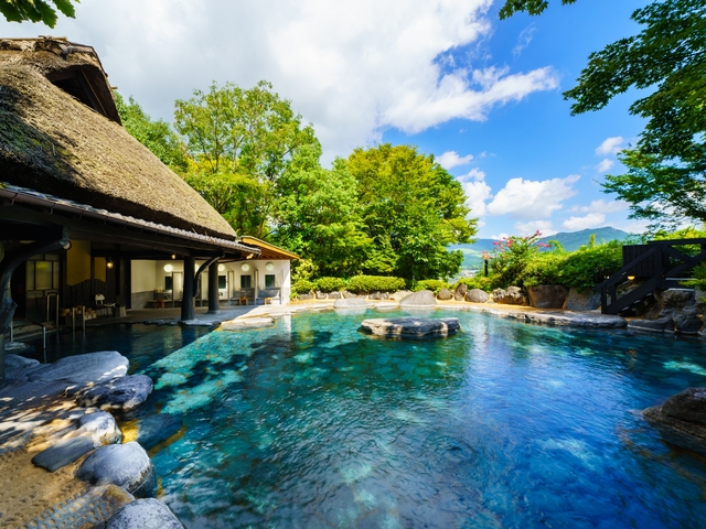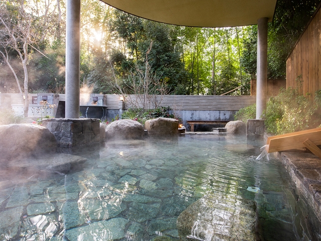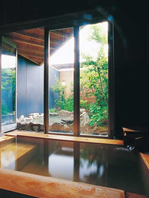 男女別の内風呂と露天風呂、12室の貸切露天風呂がある大型温泉館。貸切露天風呂にはすべて個室がつき、予約制の特別室では専用の貸切露天風呂と会席料理が楽しめる。