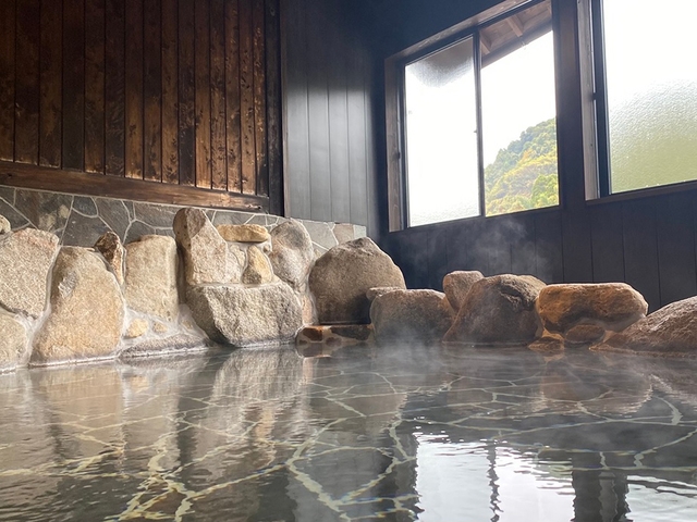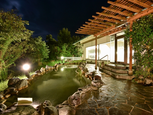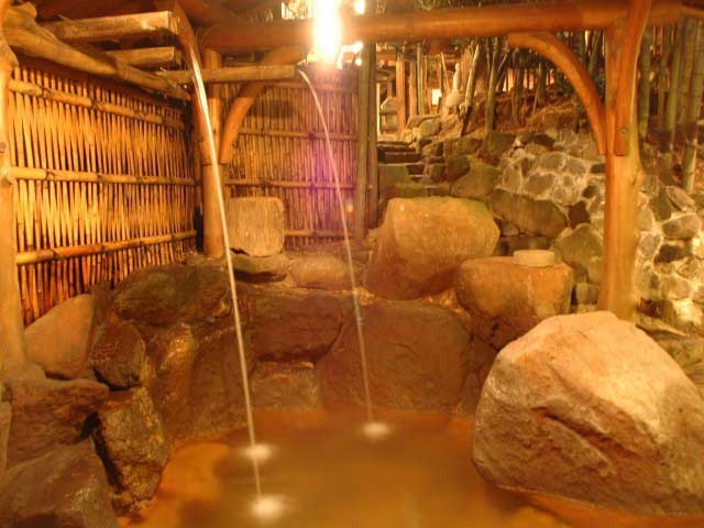 貸切風呂のみの施設で、貸切内風呂12室、貸切露天風呂2室は一度に10人ほどが利用できる広さ。日によって色とにおいが異なる湯は、腰痛や五十肩などに効果があり、湯治に訪れる人も多い。露天風呂は予約できる。