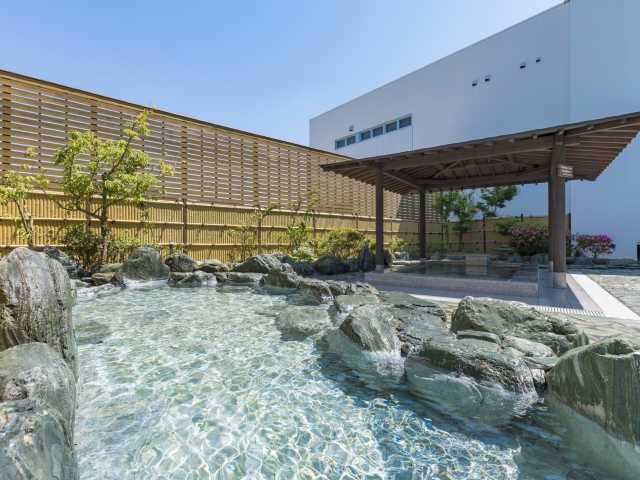 地下約1000mから湧き出る源泉高温68度の温泉を、温度の異なる源泉2本をブレンドすることで質を保ちながら温度調整して贅沢にかけ流し。自慢の炭酸水素塩泉は「美肌の湯」とも言われ、とろみのある泉質が特徴。こだわりの温泉を広々とした多彩な温泉浴槽で堪能できる。