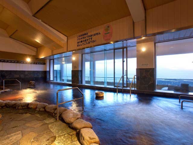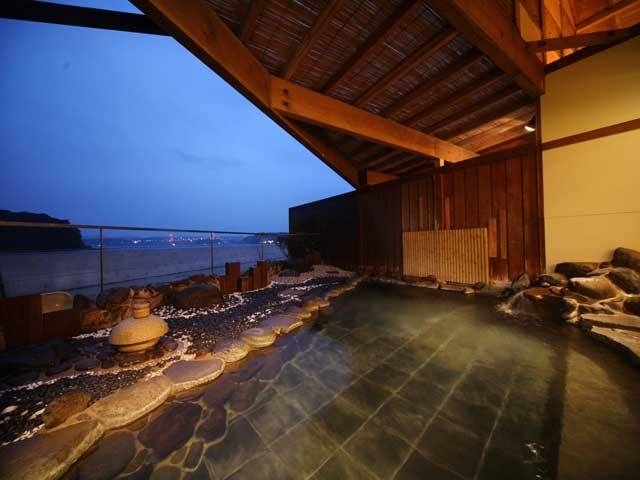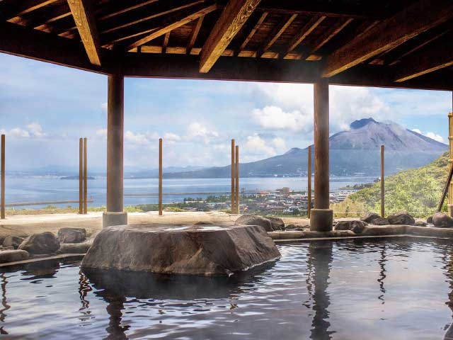 地下1000mから湧出する湯は美肌作用があると評判が高い。錦江湾を望む大浴場は気泡湯、寝湯、低周波風呂など多彩。溶岩石を使った露天風呂や三つの貸切内風呂がある。
