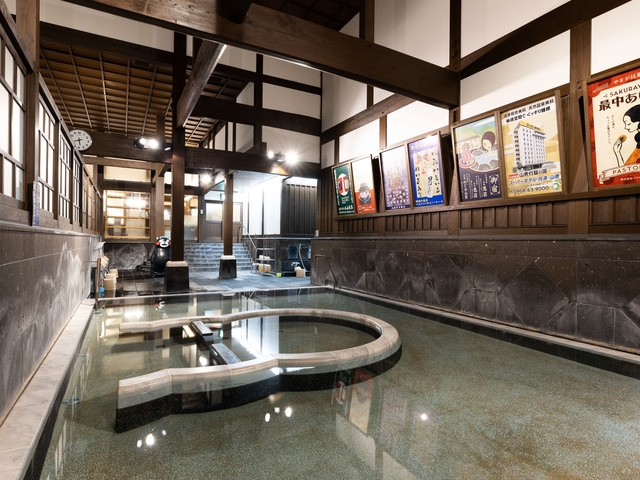 創業万延元(1860)年の伝統ある公衆浴場。源泉掛け流しで弱アルカリ性の単純温泉の湯は、やけどや慢性皮膚病などに効くと評判がいい。2階に無料休憩室があり、休憩をとりながら入浴できる。