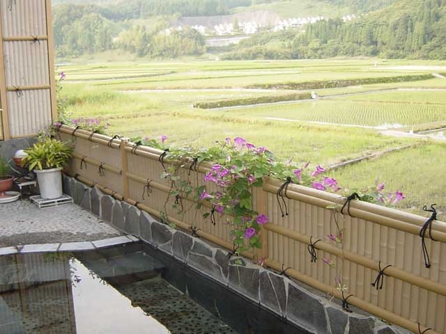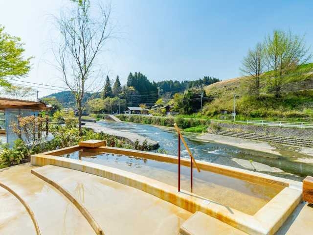 田園風景が広がる静かな場所にあり、新緑の時期は露天風呂からの眺めがいい。貸切内風呂は4つあり、利用は大人2名から。