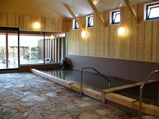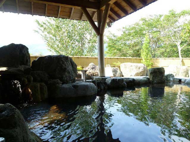 レジャー施設が充実している宿で日帰り入浴ができる。洋風浴場と檜風呂の大浴場があり、男女日替わり。露天風呂つき貸切内風呂は、和と洋の2種類がある。