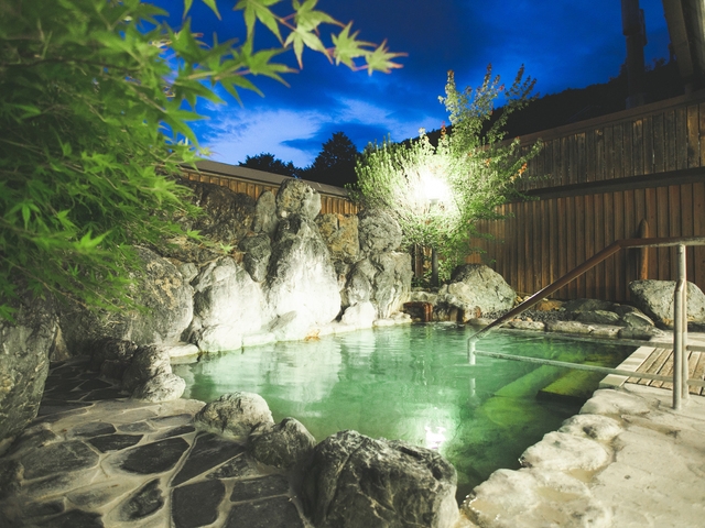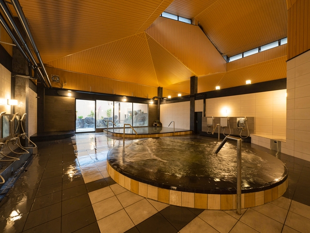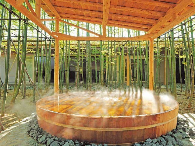 泉質はアルカリ性の「美人の湯」。ほのかに硫黄臭が漂い、ほどよいヌメリのある柔らかい湯が特徴。片流れの檜天井が美しい大空間で、外に広がる竹林を眺めながら入浴できる。また、施設内にあるミネラルミスト浴「Le Furo」(要予約)では、良質なミネラルを豊富に含んだミストが漂う室内で横になり、呼吸や肌からミネラルを効率よく取りこむことで、内臓の機能が活性化し、デトックス効果が期待できる。