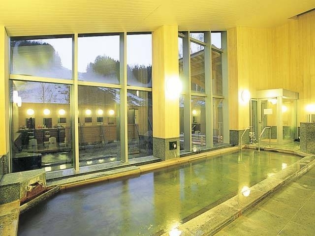 岩風呂、ジャグジー、流水歩行風呂をはじめとした9種類の風呂が揃い、和風の「臥竜の湯」洋風の「鎌田の湯」と趣の異なる2つの浴場が男女交替。どちらの浴場も北信五岳の展望が魅力。