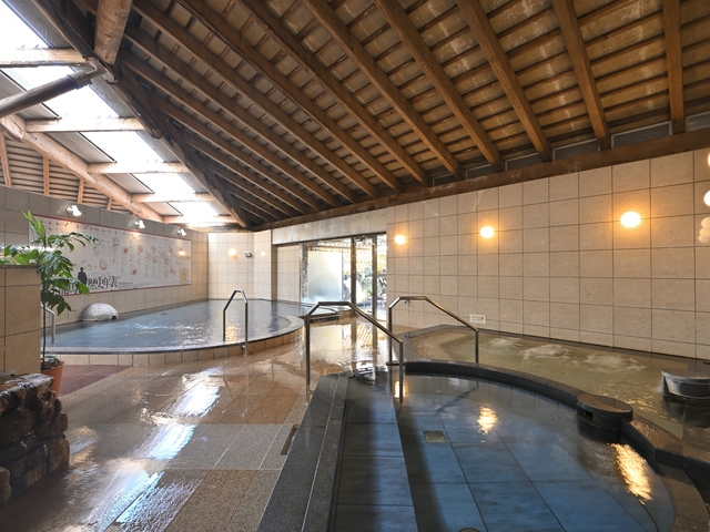 石で造られた六角形の露天風呂と、寝湯やエステ浴が並ぶ広々とした大浴場がある。1階には通年利用可能な温水プールもあり、遊泳用3コースと、シェイプアップ効果のあるという流水コースがある。