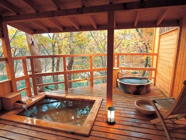 鬼怒川の自然に包まれた離れの湯処で至福の時を