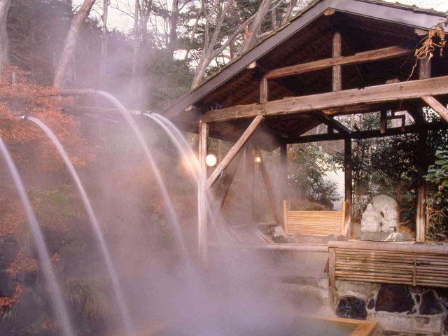 四季折々の自然を満喫しながら、雨でも入浴可能な全天候型露天風呂や綱の湯(立ち湯最深140cm)は板室温泉の伝統的入浴法がおすすめ。風呂は全部で6種類あり、男女3種類ずつ日替わりで楽しめる。湯上がりは大広間でゆっくりくつろぎたい。