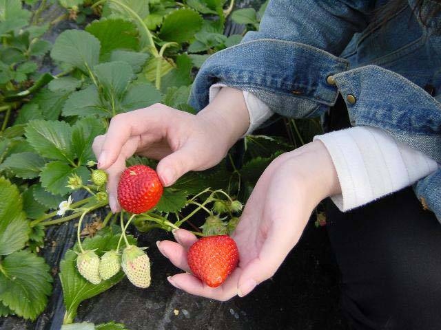 有機肥料でいちごを育てている。人気の紅ほっぺの他、さちのかやおいCベリーが、30分食べ放題で楽しめる。コンデンスミルクは無料。高設栽培のハウスもあり、腰の高さの位置でいちご狩りができる。